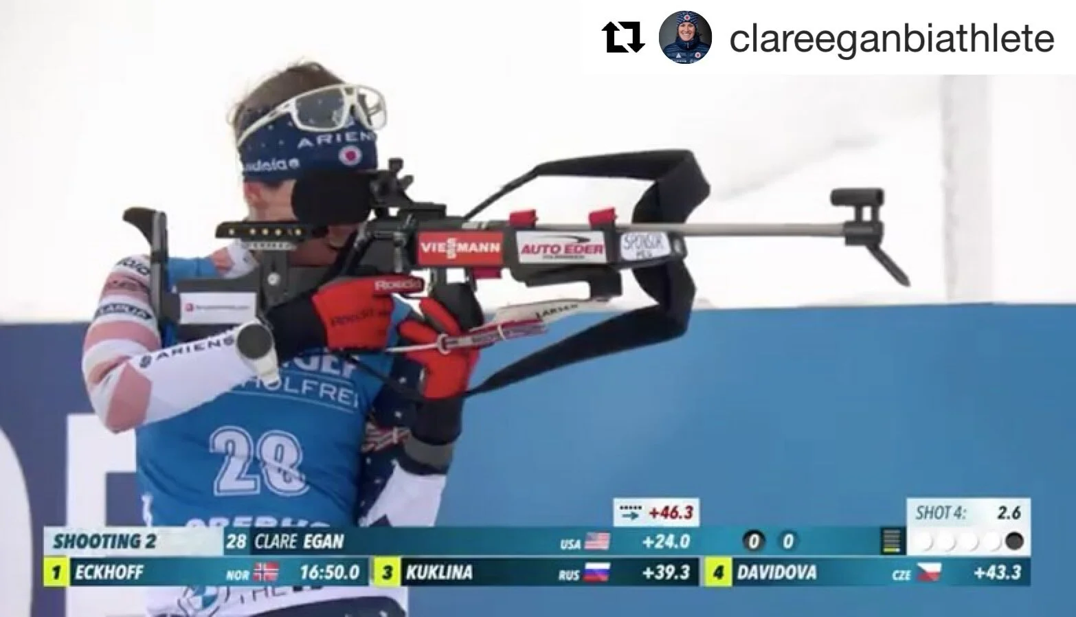 In the Mixed Relay competition Clare Egan was joined by Jake Brown, who was benched for the Sprint Race, but brought back into the fold by the coaching staff for the relay. Clare kicked off proceedings on the first leg, using two extra rounds (athletes get 3 extra shots to clean in the relay) to hit her 10 targets and continued her fast form on the tracks to tag only 11 seconds from the front of the race. Jake Brown closed out the 4 person relay with 1 extra round to drop 10 targets and fought hard against the Finnish and Italian teams to bring the US crew home in 9th place. The Team USA tied for the most accurate shooting in the competition.