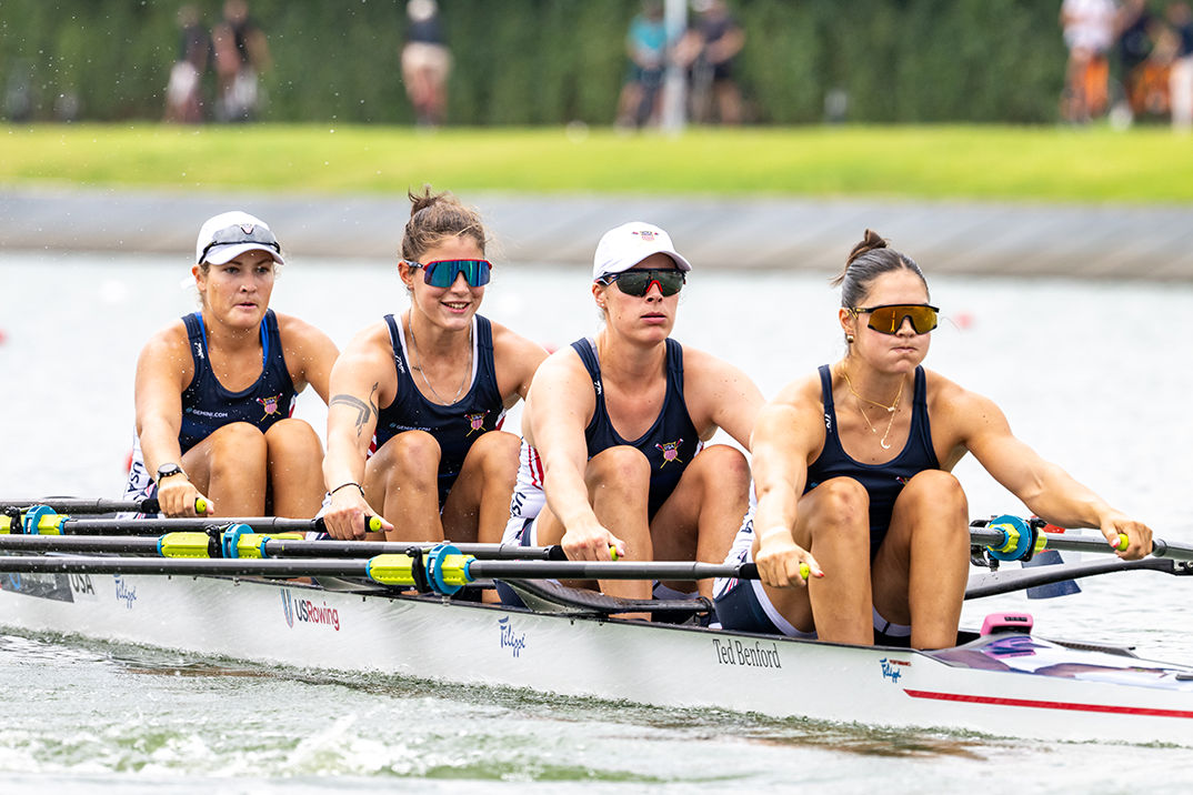 The men’s quad with GRP athlete, Jacob Plihal, had outstanding performances throughout the regatta delivering a fourth-place finish and the best result for the U.S. at a championships since 1998. The crew had a fantastic start and fought back and forth in tight racing with Great Britain and Poland during the first half of the race, while Italy had an early lead. Great Britain and Poland began to break away in the second half and the U.S. crew finished in fourth after a great sprint in the final meters.