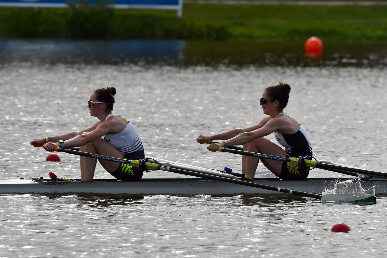 Elaine “Lanie” Tierney (stroke) and Emily “Em” Mollins will be looking to advance straight to the A Final from their heat tomorrow morning. These two have been demonstrating amazing speed all summer and showed a dominant performance at U23 Trials to take the spot as the BLW2x for the USA. Their event includes some impressive international competition, and they will get to battle it out with the women from Italy, Turkey, Poland, and Switzerland in their heat tomorrow. Their race begins at 4:40 AM EST and the progression will see the top two crews advance to the A Final with the rest of the crews going to the repechage to compete for a spot in the final again.